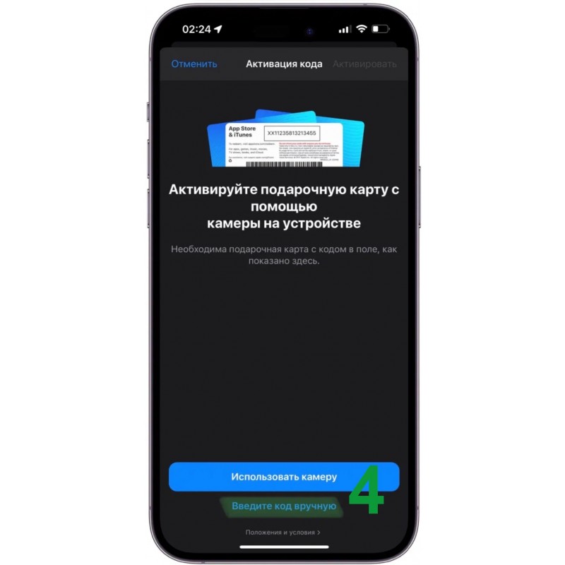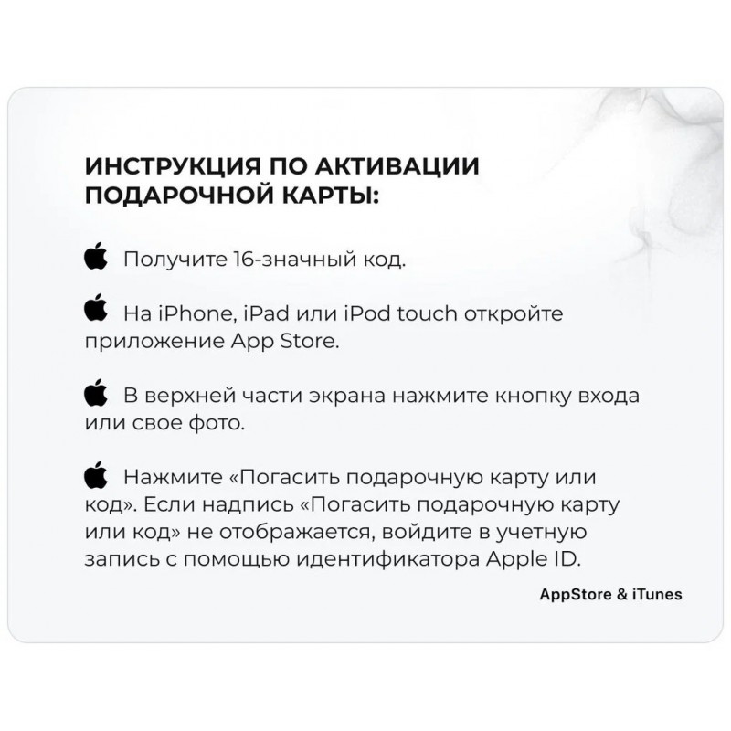 кода, который можно использовать для пополнения выбранного счёта Apple. Вы