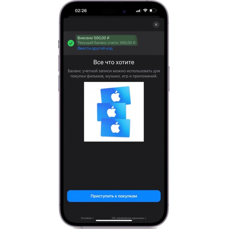 которая будет зачислена непосредственно на ваш счёт Apple. После этого вы